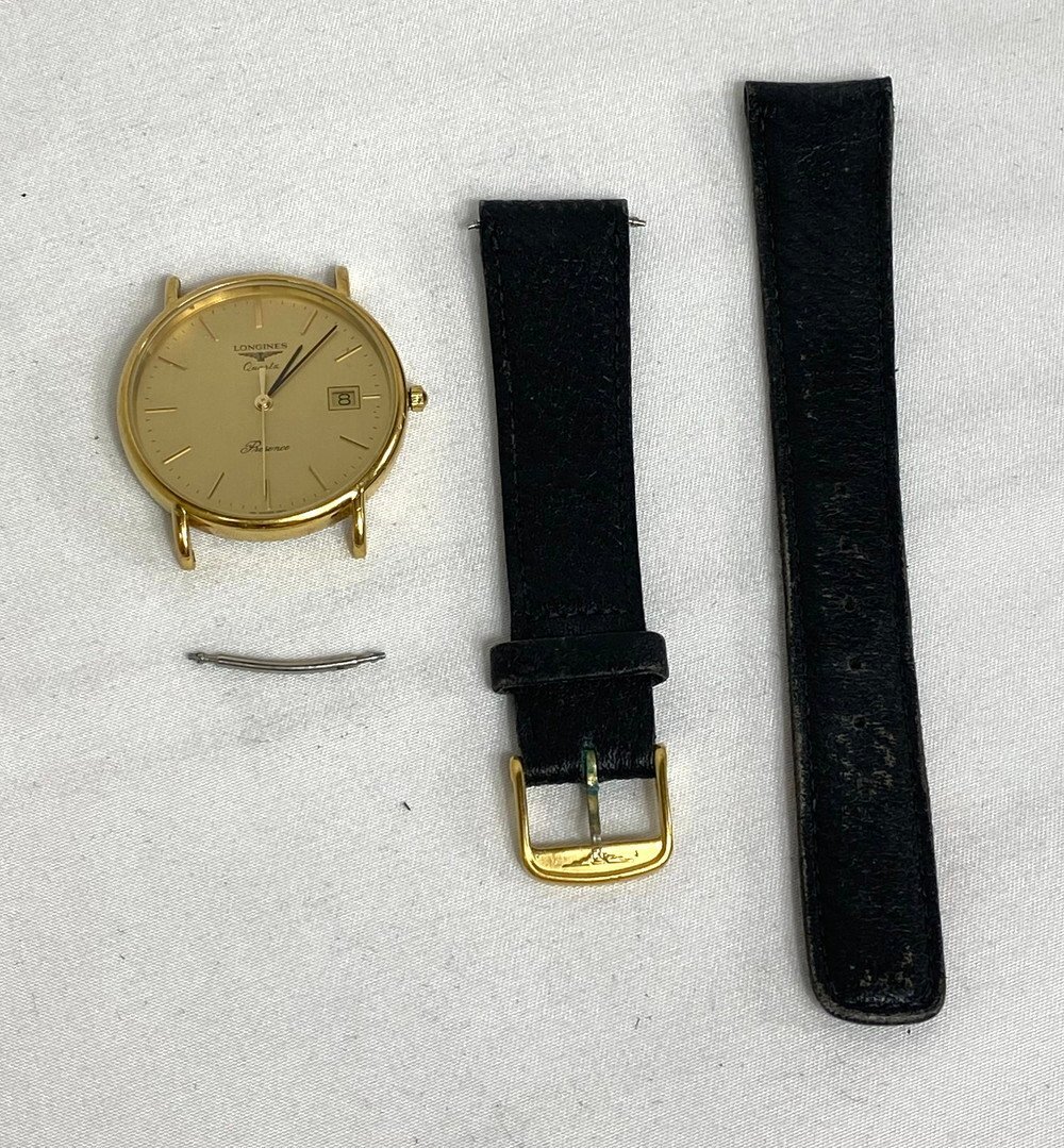 > 【5AP2193】1円スタート Longines ロンジン PRESENCE プレザンス 156 6801 クォーツ 腕時計 稼働品 メンズウォッチ ゴールド文字盤 デイト