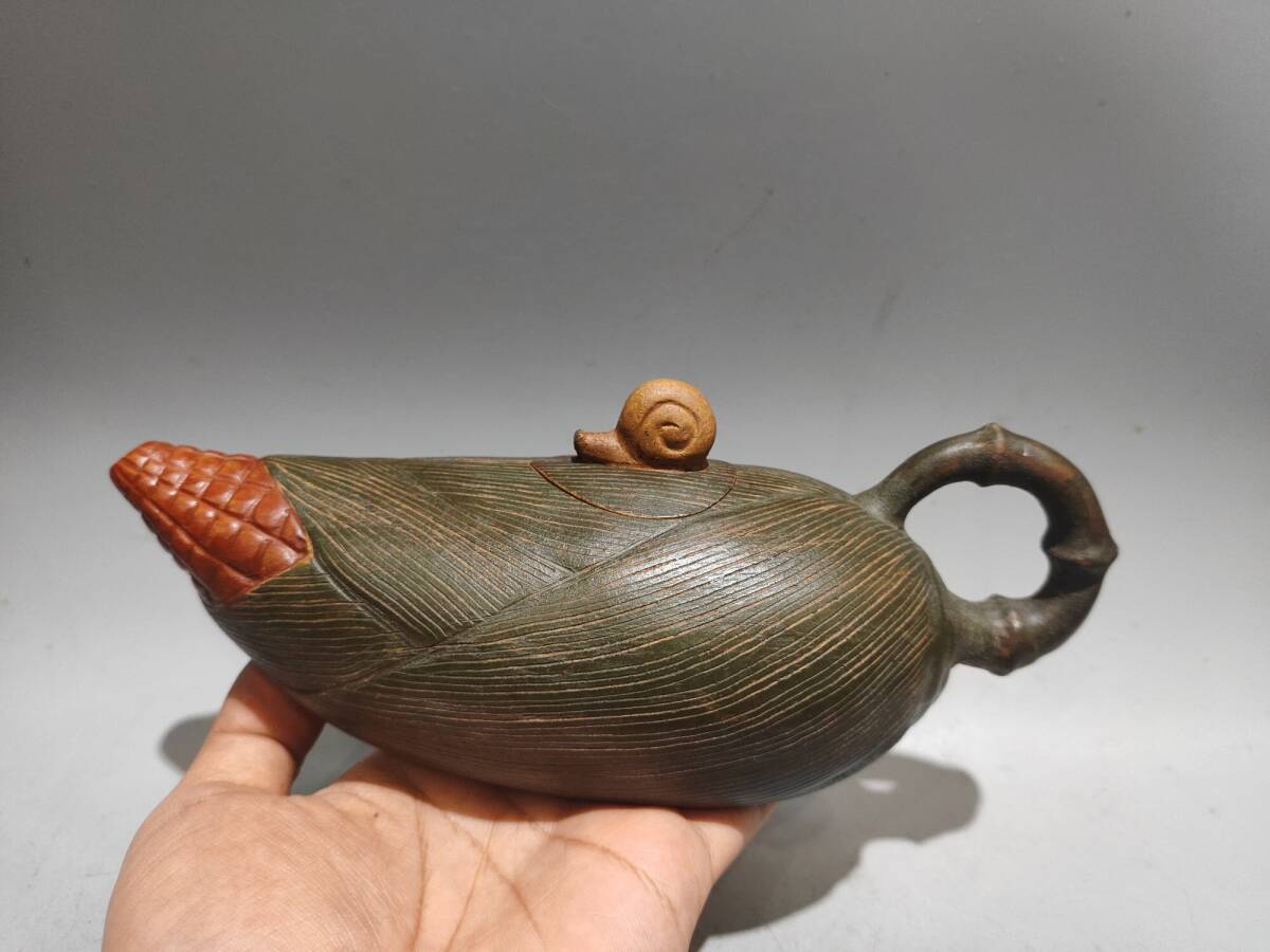 - 蔵友旧蔵出 紫砂壺 玉米壺 汪寅仙款 原礦黄段砂 箱付 茶道品 煎茶道具 文房賞物 希少珍品 中国古玩 中国古美術品