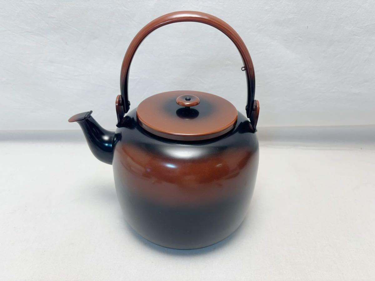 > M704370 ほぼ未使用 茶道具 やかん 腰黒やかん 水注 口蓋付 薬缶 煎茶道具 裏千家 水屋道具 湯沸 利休形 金属工芸 箱無