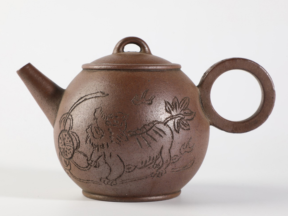 - ◆御泓軒◆『清時代 鉄画軒製 獅子戯繍球紋茶壺 共箱 宜興紫砂 常滑 朱泥急須 煎茶道具 茶壷』極細工・古賞物・中国古玩・中国古美術