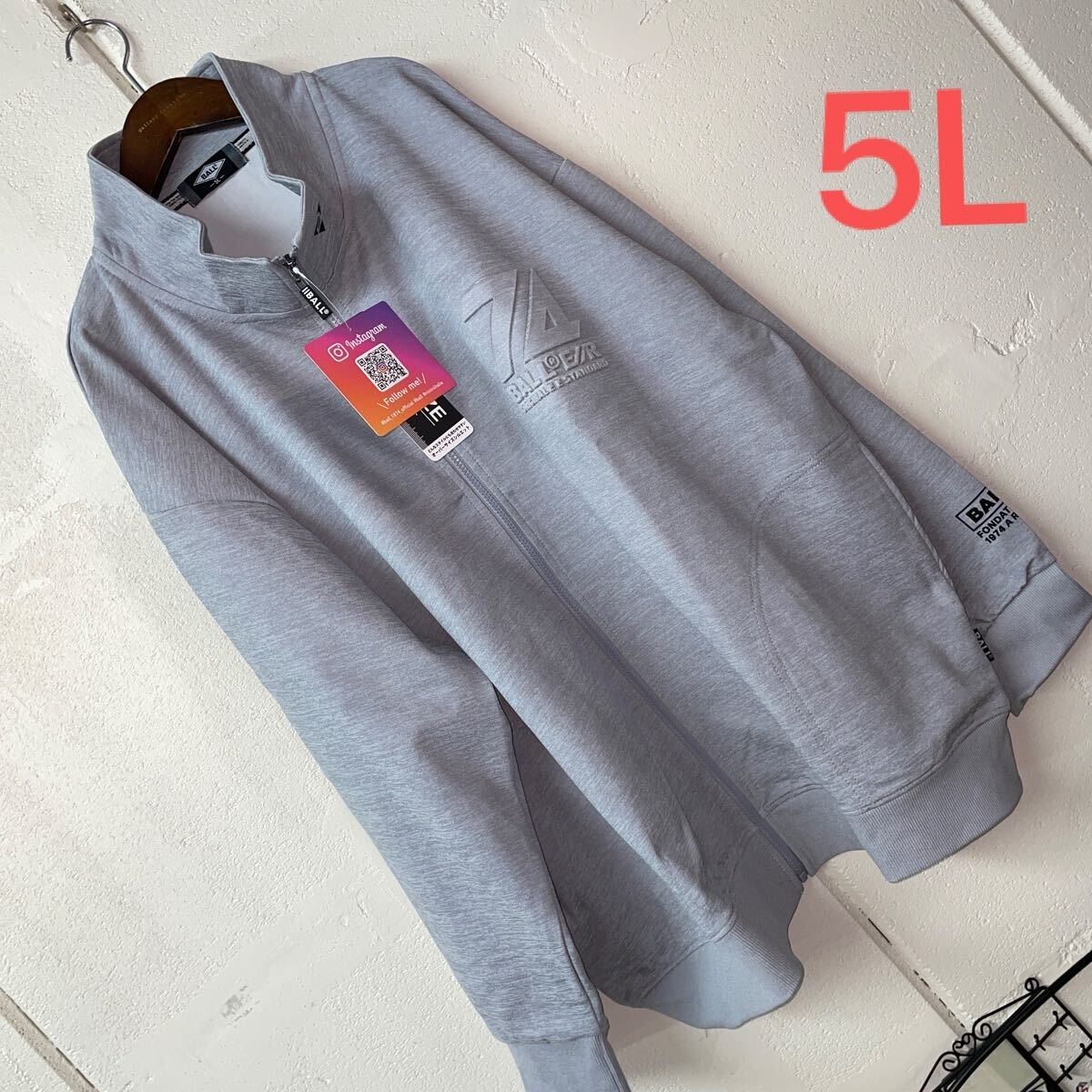 - 5LサイズメンズBALLエンボス加工トレーナージャケット グレー