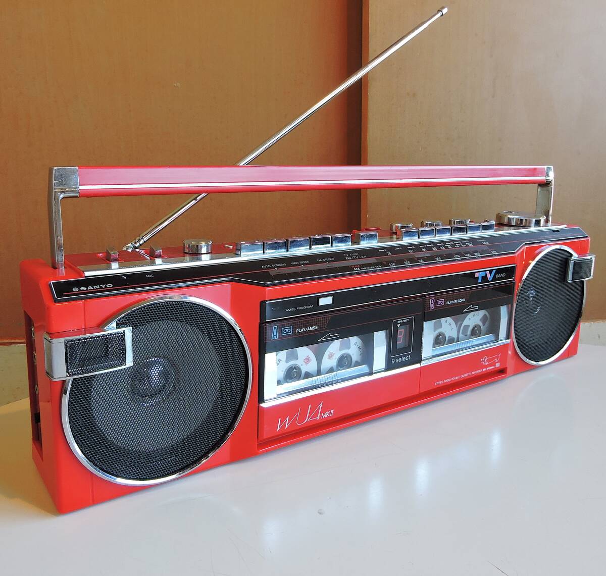 > 80s SANYO 小型ダブルラジカセ WU4 mkⅡ人気色 赤 整備済 各動作正常 美品 U4 高音質 白スピーカー搭載 新品カセットテープ/取説他付属
