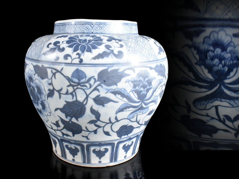 > 【雲】某収集家買取品 中国古玩 唐物 染付花鳥唐草紋花瓶 飾壺 高さ27.5cm 古美術品(花器花入)BJ1781 OTDnhyg LBmkjh