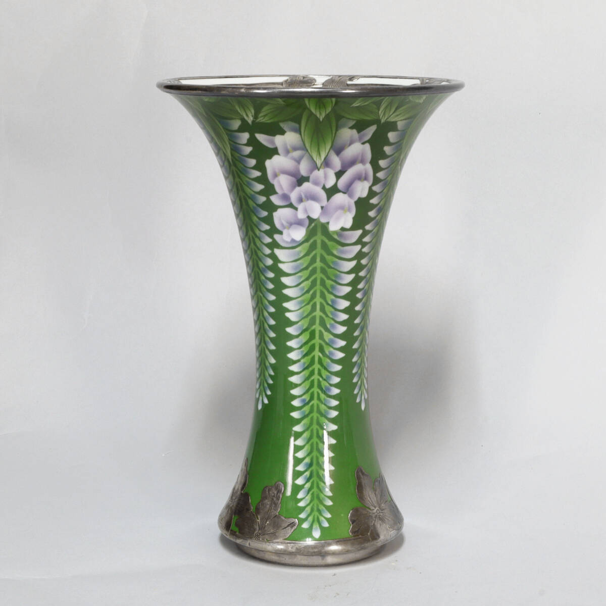 - 松風嘉定 藤文釉下彩銀飾花瓶 真贋保証 銀 飾 ふじの花 京焼