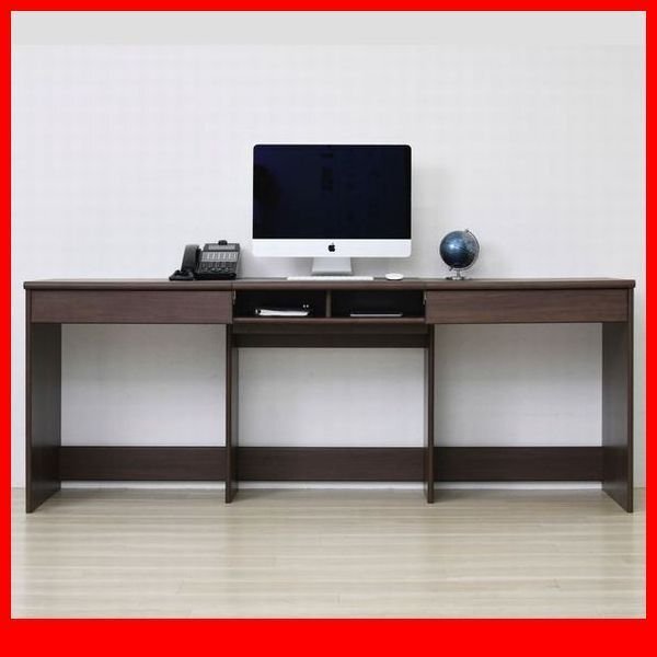 - 机★ワイドデスク W190/ワークデスク オフィスデスク パソコンデスク システムデスク/配線収納 大容量の引き出し収納 背面化粧/ブラウン/a2