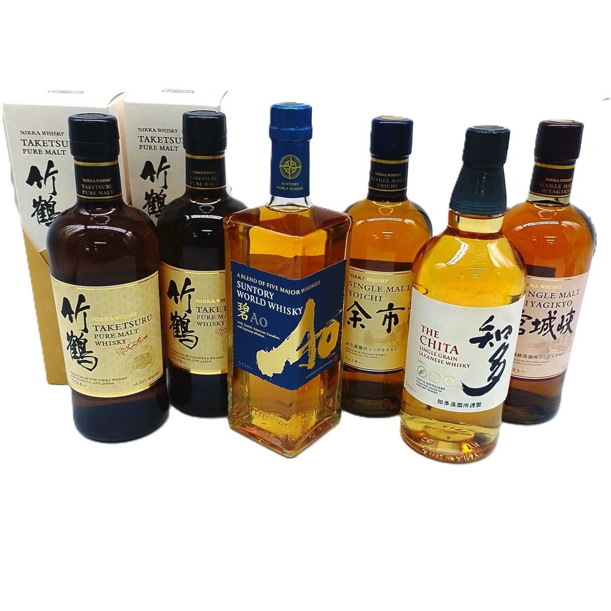 - 未開封 サントリーとニッカ 国産ウイスキー6本セット 竹鶴 白ラベル2本、余市NV、宮城峡NV、知多、ワールドウイスキーAO碧 豪華セット