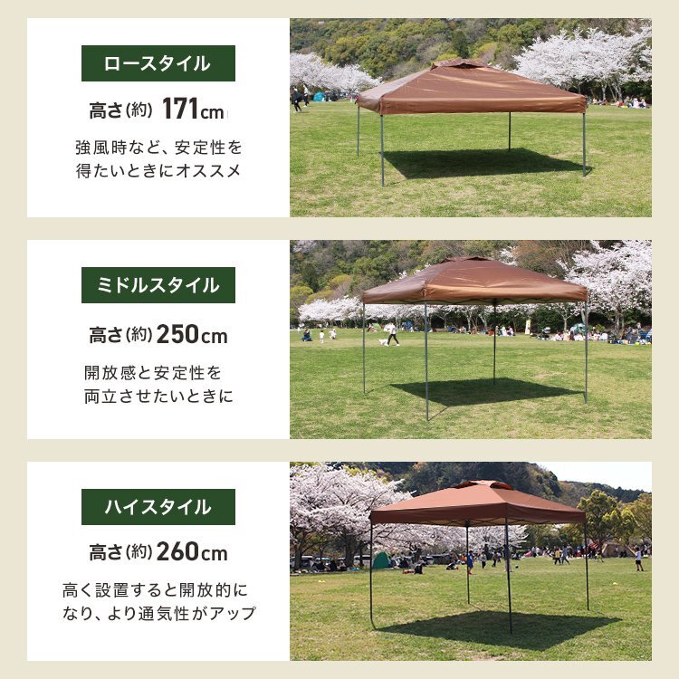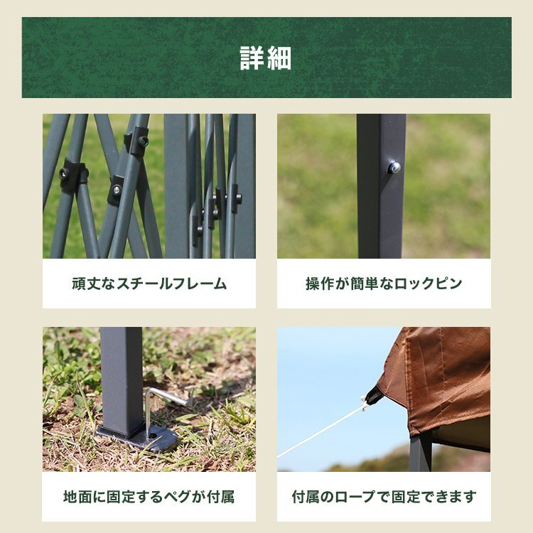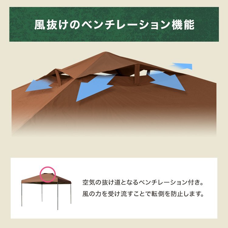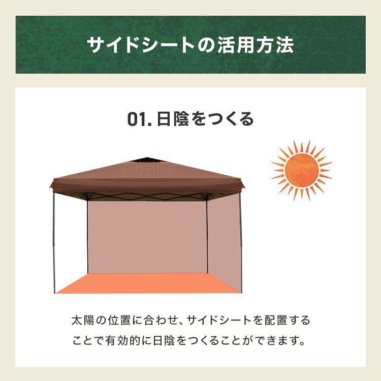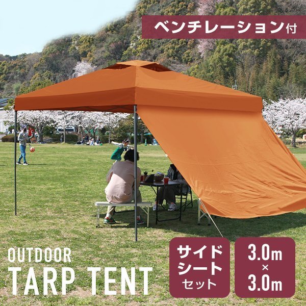 - 【サイドシート付】タープテント 3m ベンチレーション 収納ケース 撥水 スチールフレーム UVカット キャンプ アウトドア BBQ オレンジ
