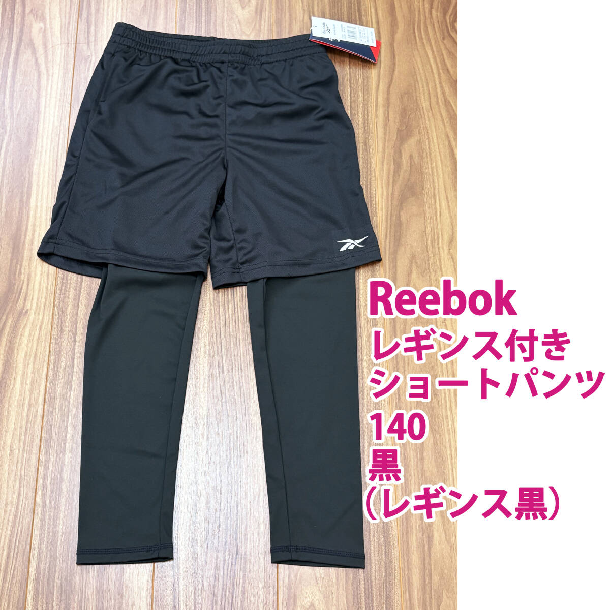 - 新品 日本未入荷 Reebok レギンス付きショートパンツ(一体型)140cm 黒×黒 リーボック スポーツ用ハーフパンツ 子供男女兼用