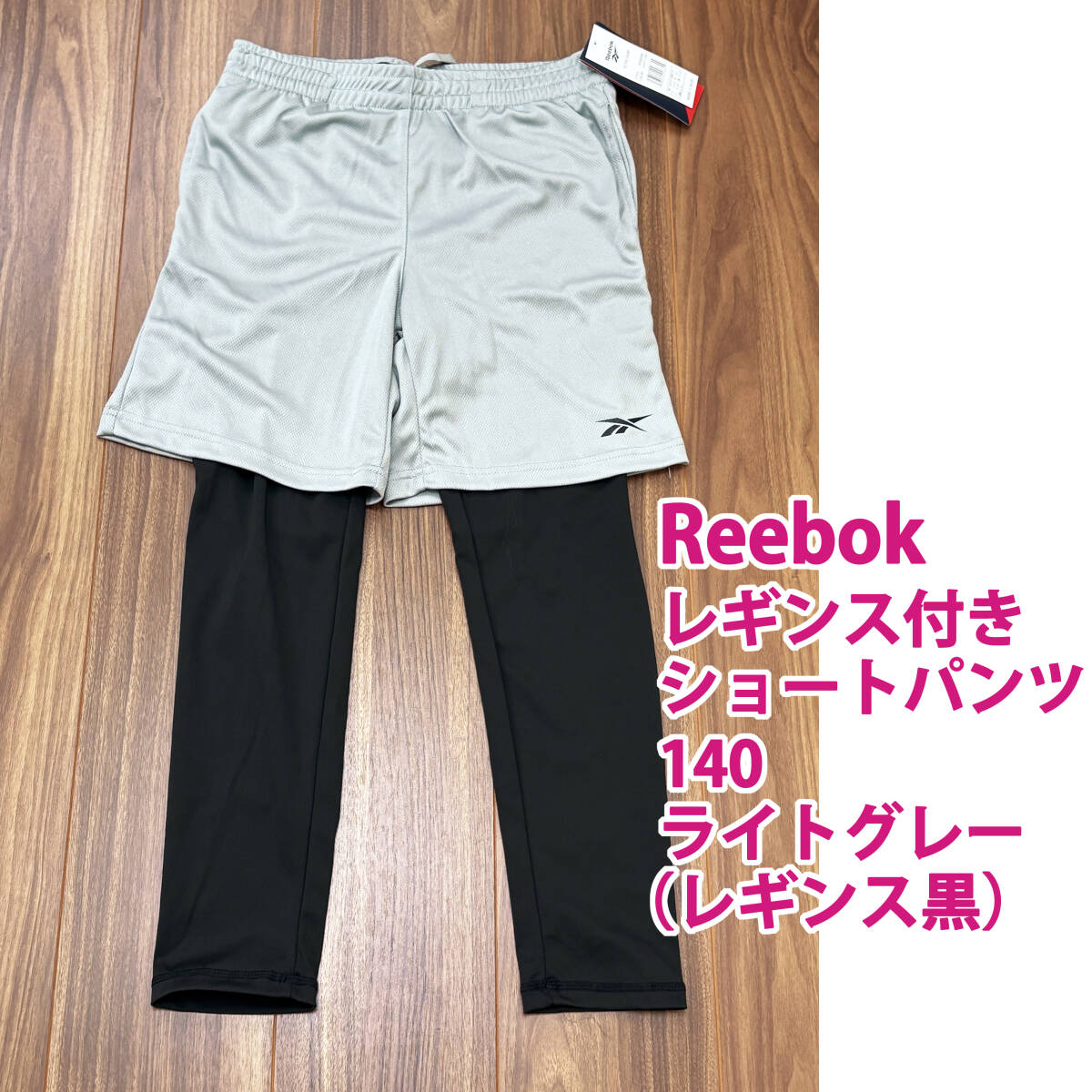 - 新品 日本未入荷 Reebok レギンス付きショートパンツ(一体型)140cm ライトグレー×黒 リーボック スポーツ用ハーフパンツ 子供男女兼用