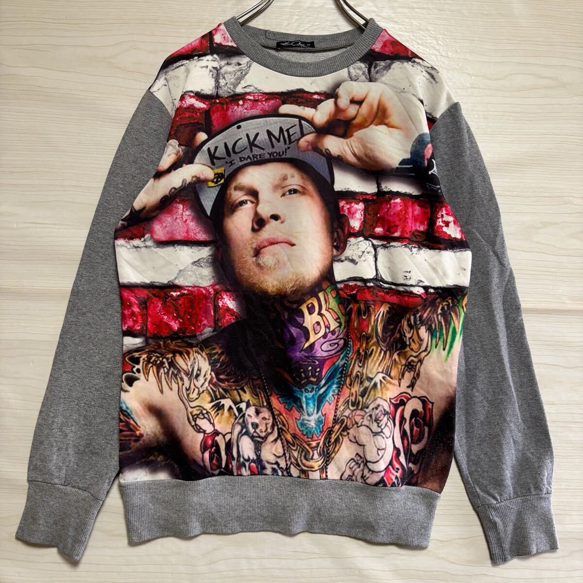 > VINTAGE ヴィンテージ スウェット トレーナー コットン 総柄 クルーネック ラーパープリント サイズS グレー メンズ トップス (30)