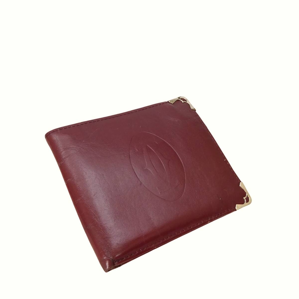 - 本物■カルティエ■ヴィンテージ マスト ボルドーレザー ゴールド 二つ折り財布 /92351