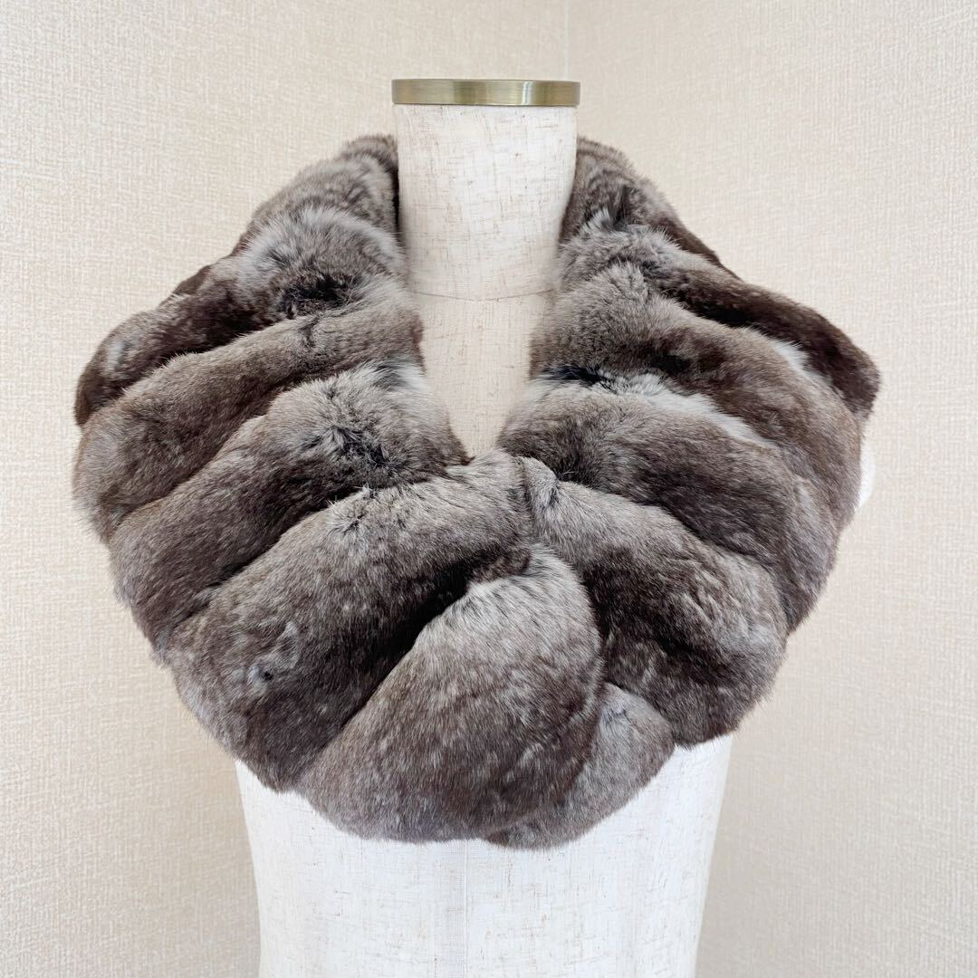 - 即決◆高級毛皮 チンチラ 大判 ファーショール ティペット 豪華 マフラー リアルファー