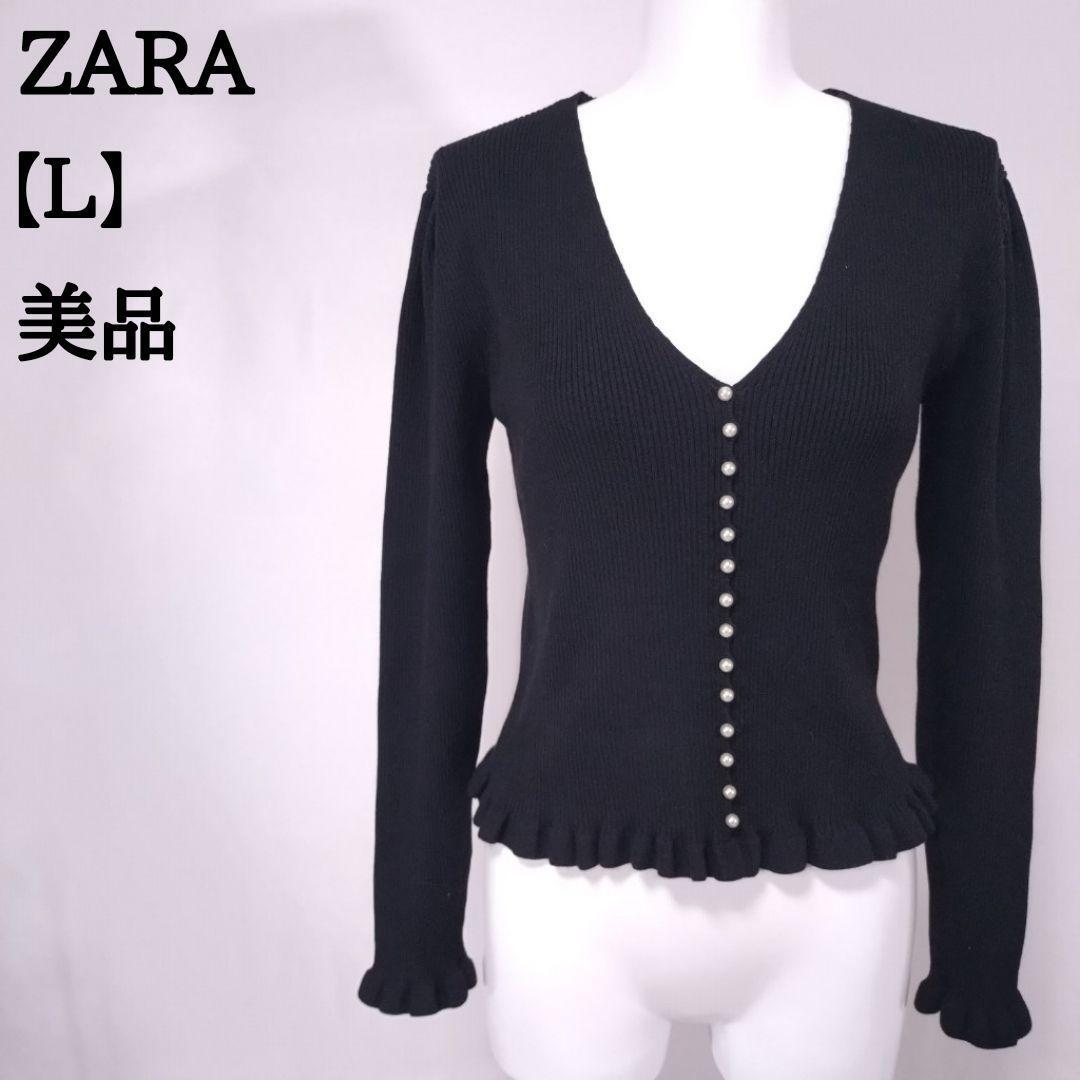 - 【美品】ZARA ザラ リブ Vネック カーディガン 長袖 袖口裾フリル