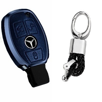 - 新品即決 メルセデスベンツ アルミ 紺本革 レザー キーケース キーカバー Vクラス CLAクラス CLSクラス GLAクラス GLSクラス A207 A217