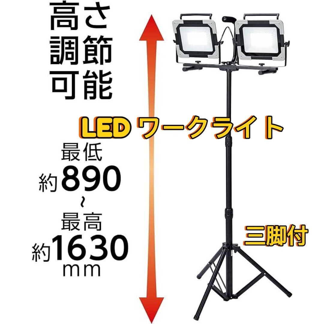 - LEDワークライト スタンド式 ダブル 60W 作業灯 投光器 照明 2WAY 自由自在 全光束約12000lm 広範囲 IP65等級防水防塵 高さ調節が AF736