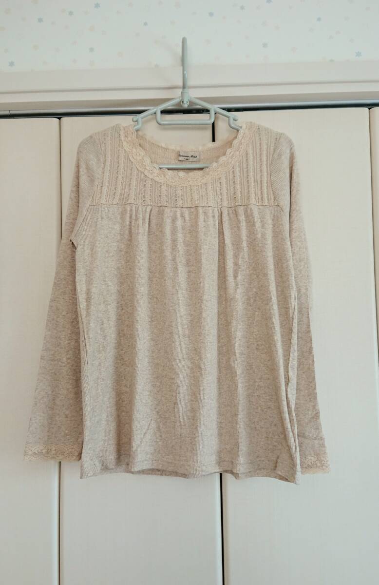 - サマンサモスモス★透かし柄ニット切り替えリブプルオーバー・ベージュ★タグ付き