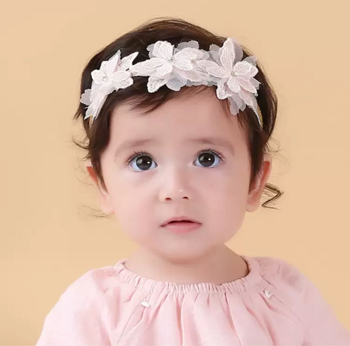 - 【ホワイト】ベビーカチューシャ 髪飾り ベビーヘアバンド レース ゴム