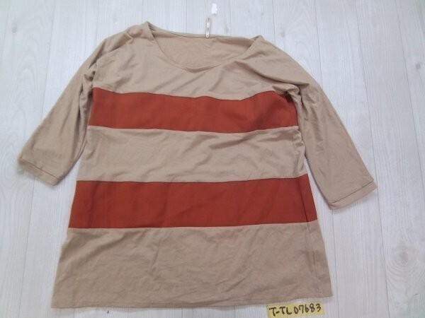 - gaminerie ギャミヌリィ レディース ボーダー 七分袖カットソー レンガベージュ