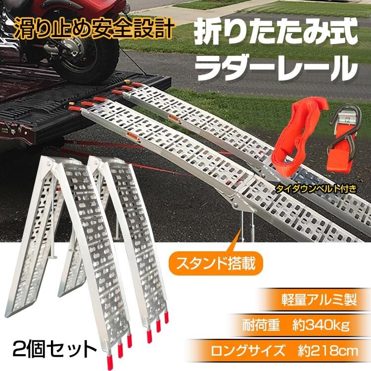 - 送料無料 ラダーレール 車 2個セット バイク スロープ 折りたたみ 二つ折り 軽量 アルミブリッジ アルミスロープ ベルト付き アルミ ny477a