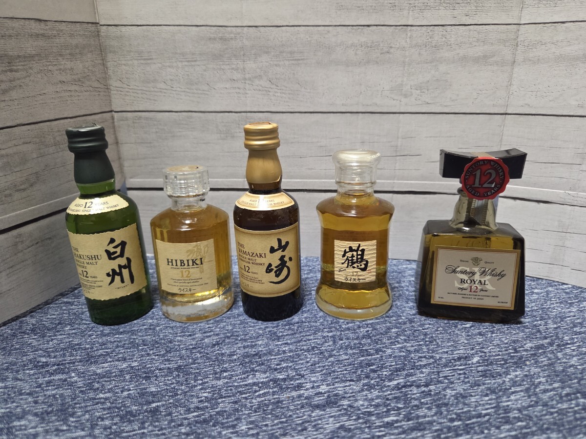 > 5本セット/新品/未開封【山崎12年 白州12年 響12年 鶴17年ローヤル ミニチュア ボトル 50ml 】竹鶴ミニボトル酒ウイスキー/サントリー古酒
