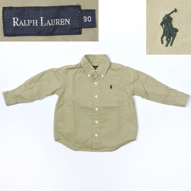 > ☆USED☆ラルフローレン RALPH LAUREN 長袖シャツ 90 グレージュ 子供服 キッズ 秋冬■メール便OK 追跡あり■