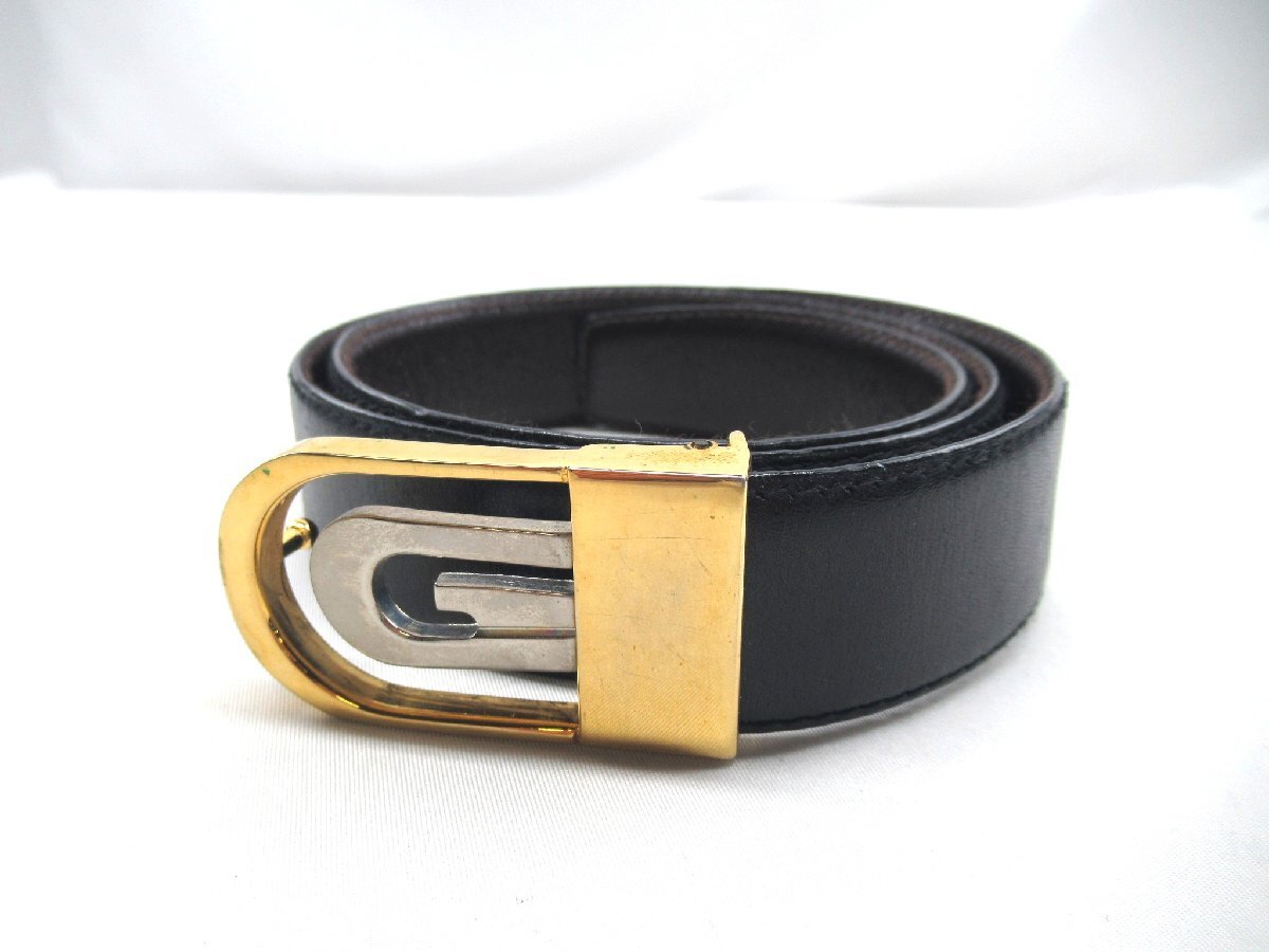 - ★【B送900円】2502 GUCCI オールドグッチ リバーシブルベルト レザー ロゴバックル 黒/ブラウン ゴールド金具 イタリア製