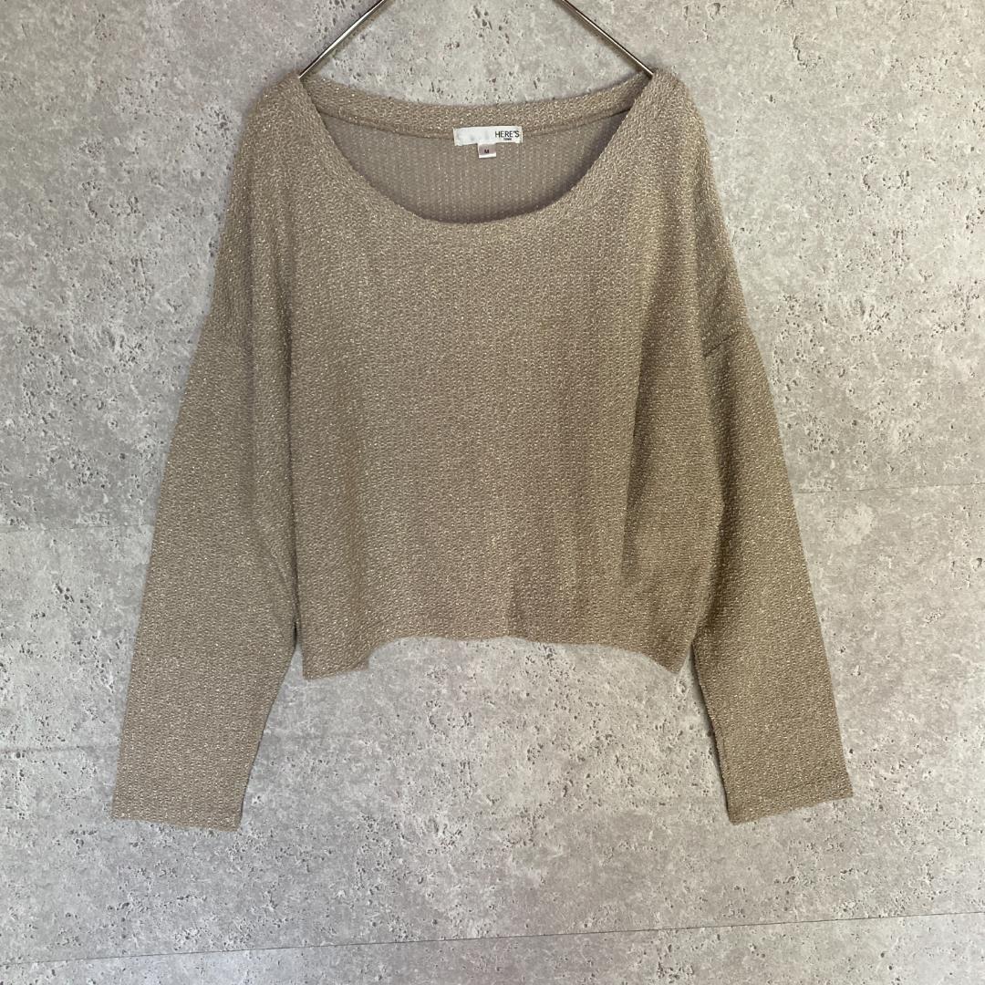 - 【HERE'S】ヒアーズ(M)長袖ラメカットソー*ラウンドネック*ゴールド