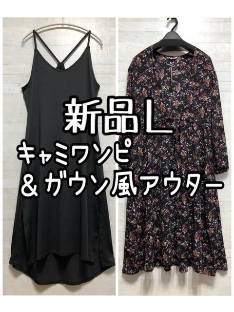 - 新品☆L♪小花柄薄手ガウンアウター&黒キャミソールワンピース♪☆Q414