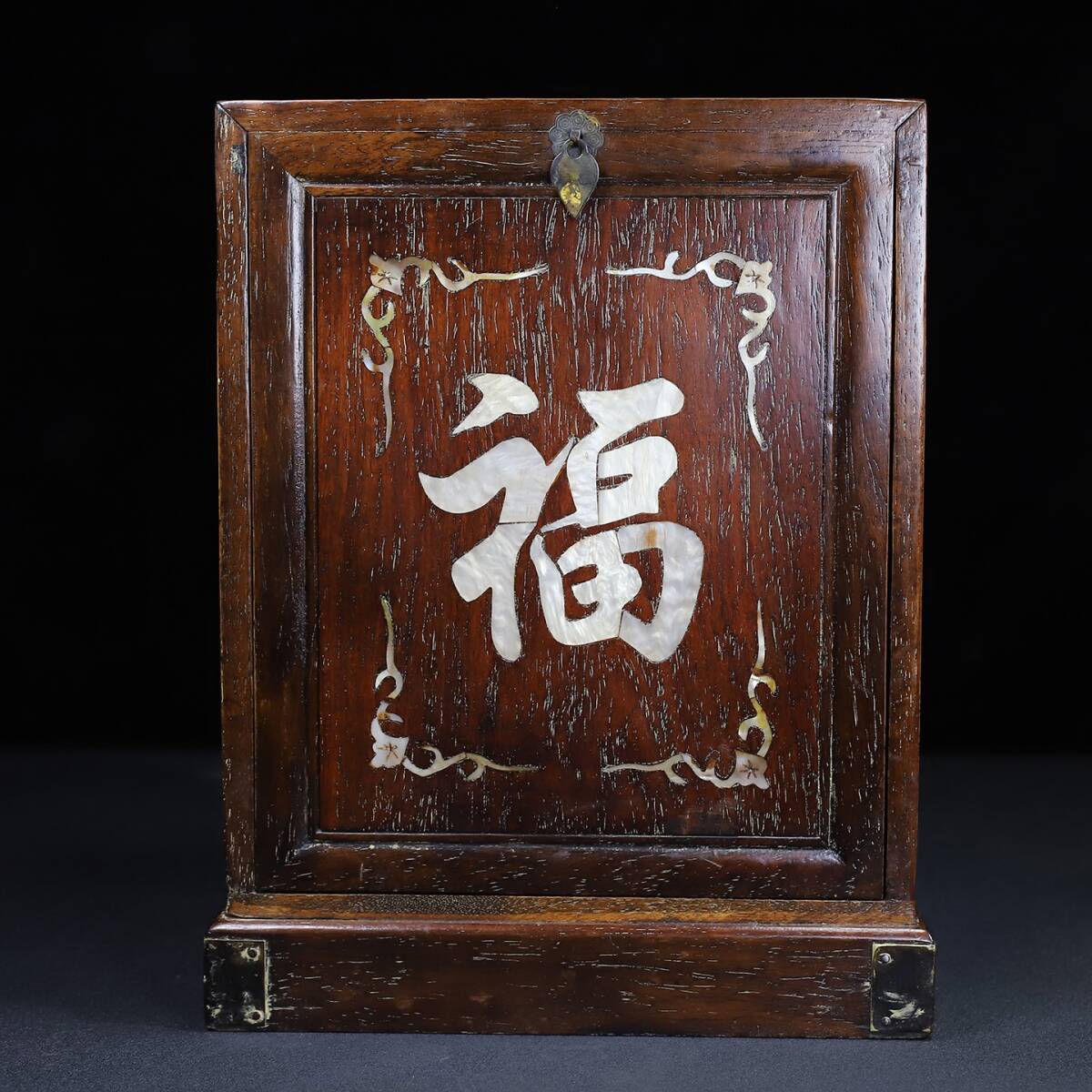 - ▽鴻▽ 花梨木製 細密彫 貝殼嵌 五斗櫃 置物 文房賞物 古賞物 古董品 時代物 稀少珍品 中国古玩 中国古美術