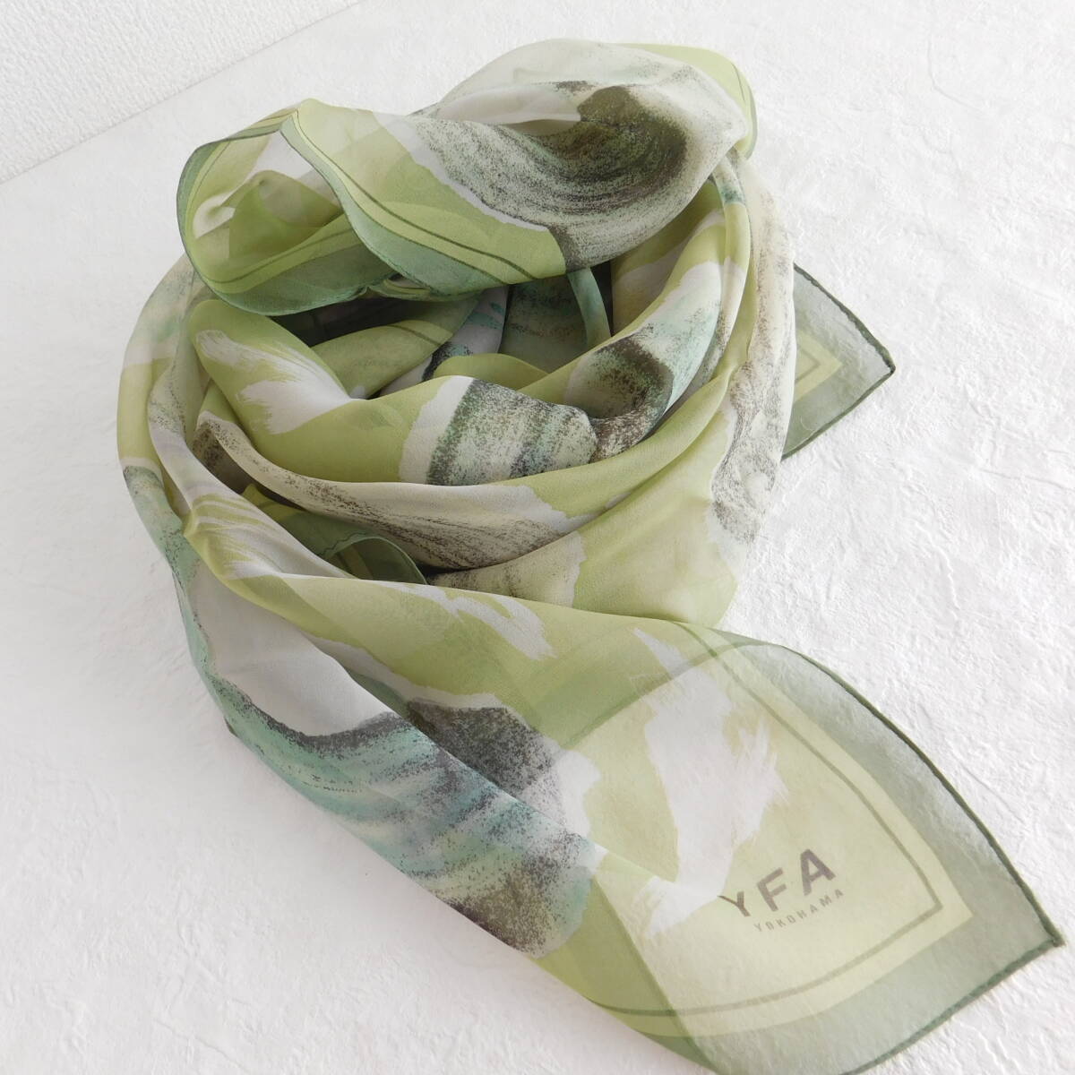 - 横浜スカーフ★シルク★日本製★絹★新品同様★D756