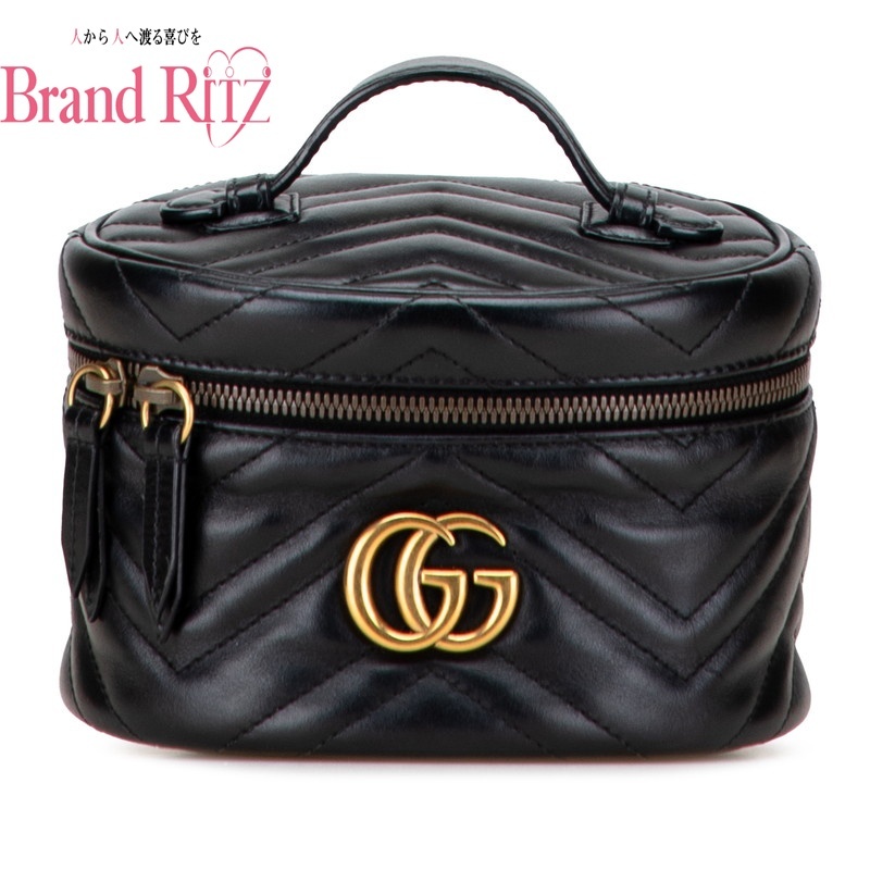 - 中古 グッチ GGマーモント バニティバッグ コスメバッグ 624615 ABランク ブラック レザー レディース 【送料無料】【西神店】