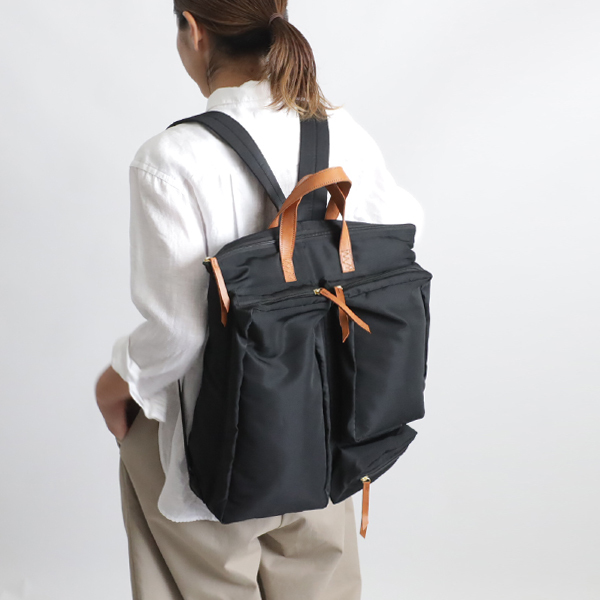 - 再制作 Lサイズ 軽量 収納上手な マチ付 多ポケット リュックサック クッション入ナイロン P91B