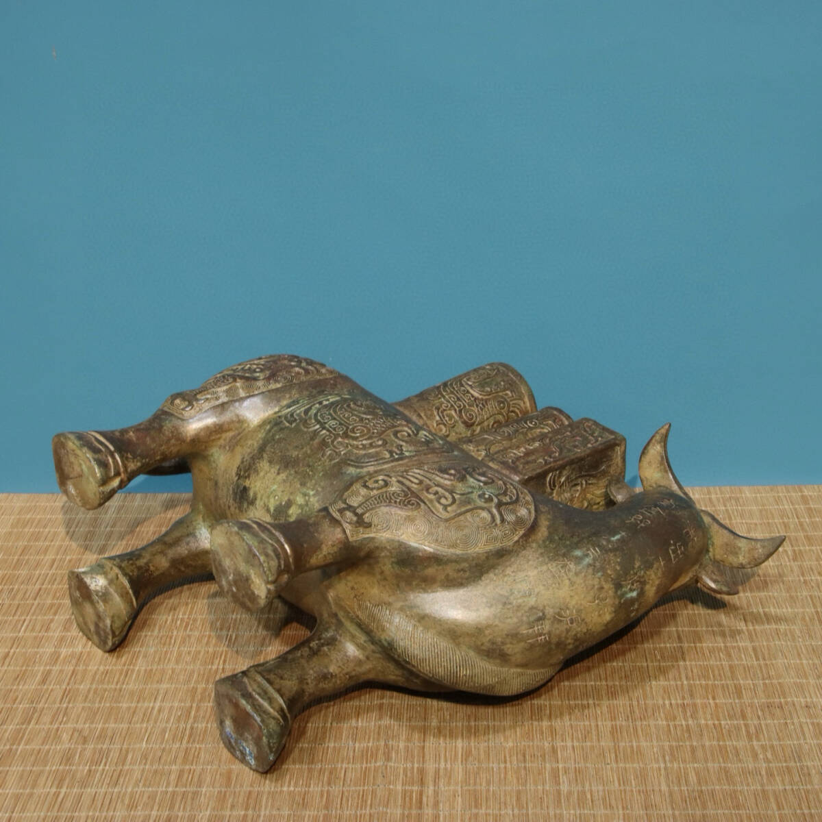 - ▽鴻▽ 青銅製 銘文 牛尊 青銅器 置物 賞物 古賞物 古董品 時代物 稀少珍品 中国古玩 中国古美術
