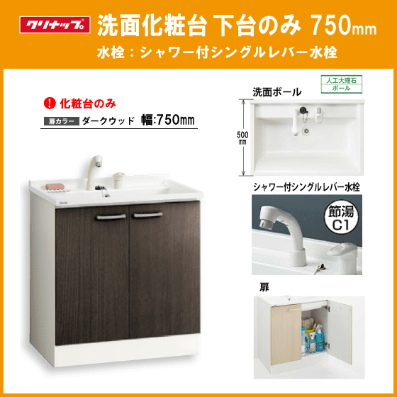 - 洗面化粧台 下台のみ(ミラー部なし) シングルシャワー水栓 幅:750mm BGAL75TNTVW クリナップ BGAシリーズ