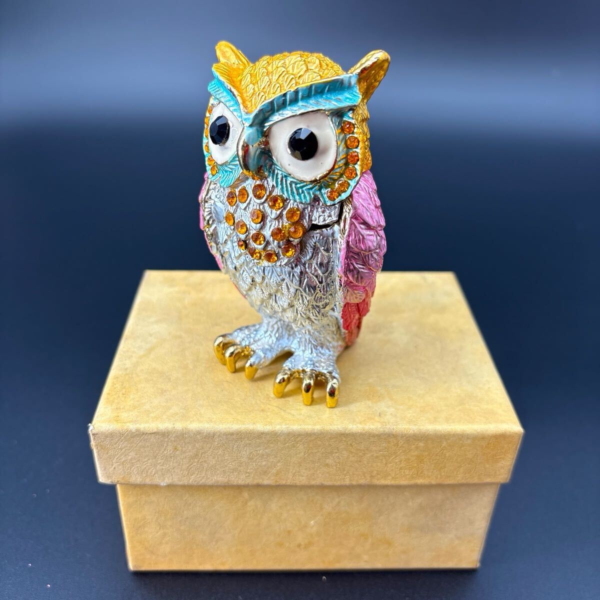 - フクロウ ジュエリーボックス 小物入れ 金属製 置物 インテリア アクセサリー ジュエルストーン? アンティーク 梟 鳥 未使用 送料無料