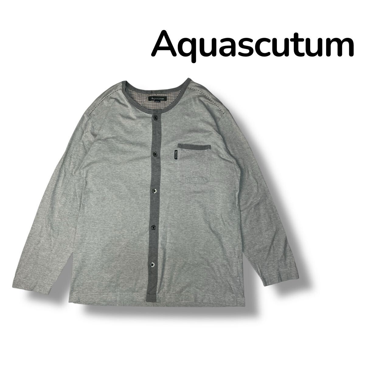 - OK1003 美品 Aquascutum アクアスキューム 長袖イージーシャツ ヘンリーネック クラブチェック グレー系 Mサイズ