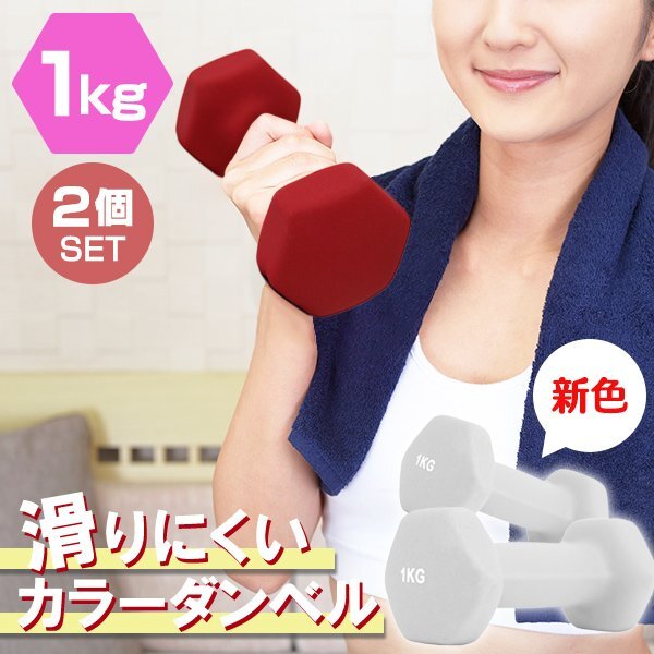 - 【2個セット/ライトグレー】滑りにくい カラー ダンベル 1kg 筋トレ エクササイズ 宅トレ シンプル ウエイトトレーニング ダイエット 新品