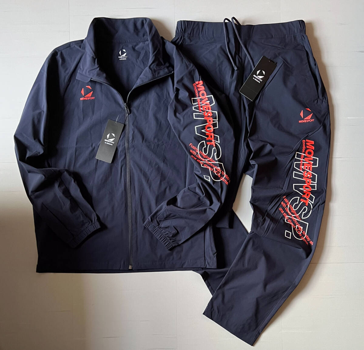 > DESCENTE■デサント〔L〕クロスジャケット/パンツ 上下セット 撥水・ストレッチ・UPF50+ ネイビー/赤 セットアップ 25'秋 通年モデル