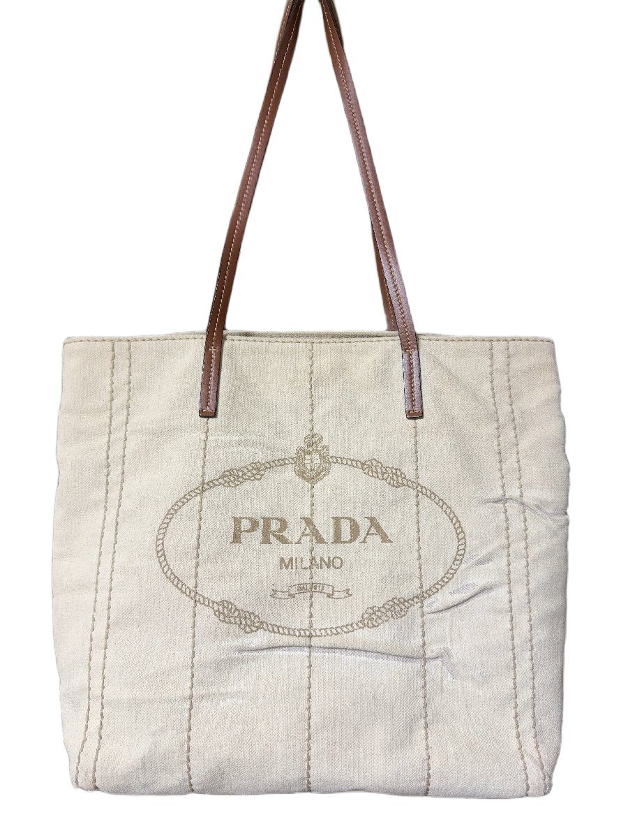 - PRADA プラダ トートバッグ キャンバス ベージュ × アイボリー/mi-A-213-5906-12.7/普段使い/手頃/丁度良い/ハイブランド
