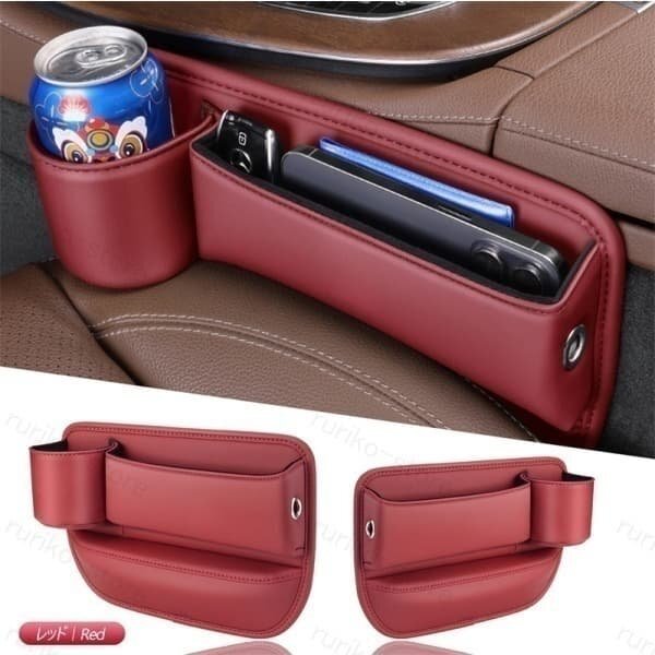 - キックス P15 車のシート 隙間ボックス左右2個 センター隙間埋め レザー 落下防止 小物入れ レッド