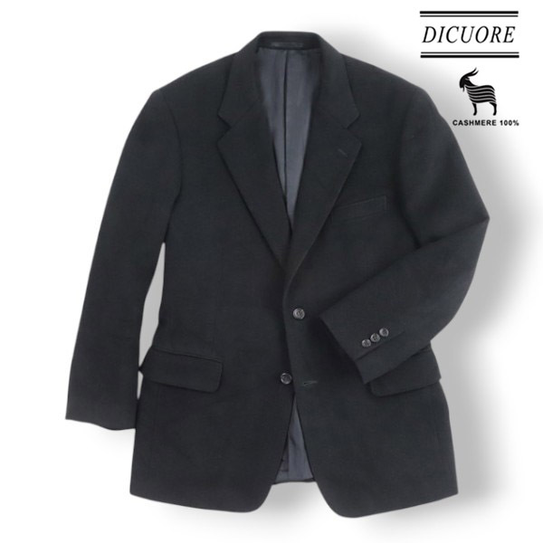 > 美品 日本製極上仕立て!DICUORE ディクオーレ カシミヤ100% ビーバーウール 2つボタン ブレザー テーラードジャケット 黒 L