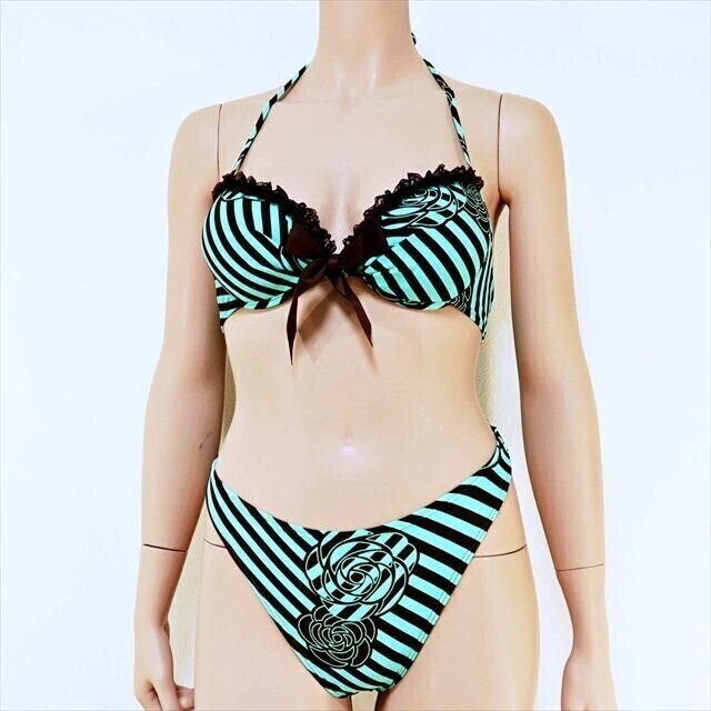 - PE3-Y17☆//Pinky&Diianneピンキーダイアン*スポーティーボーダーにフリルレースで甘さプラス*ガーリーな大ぶりリボン*ワイヤービキニ*▲