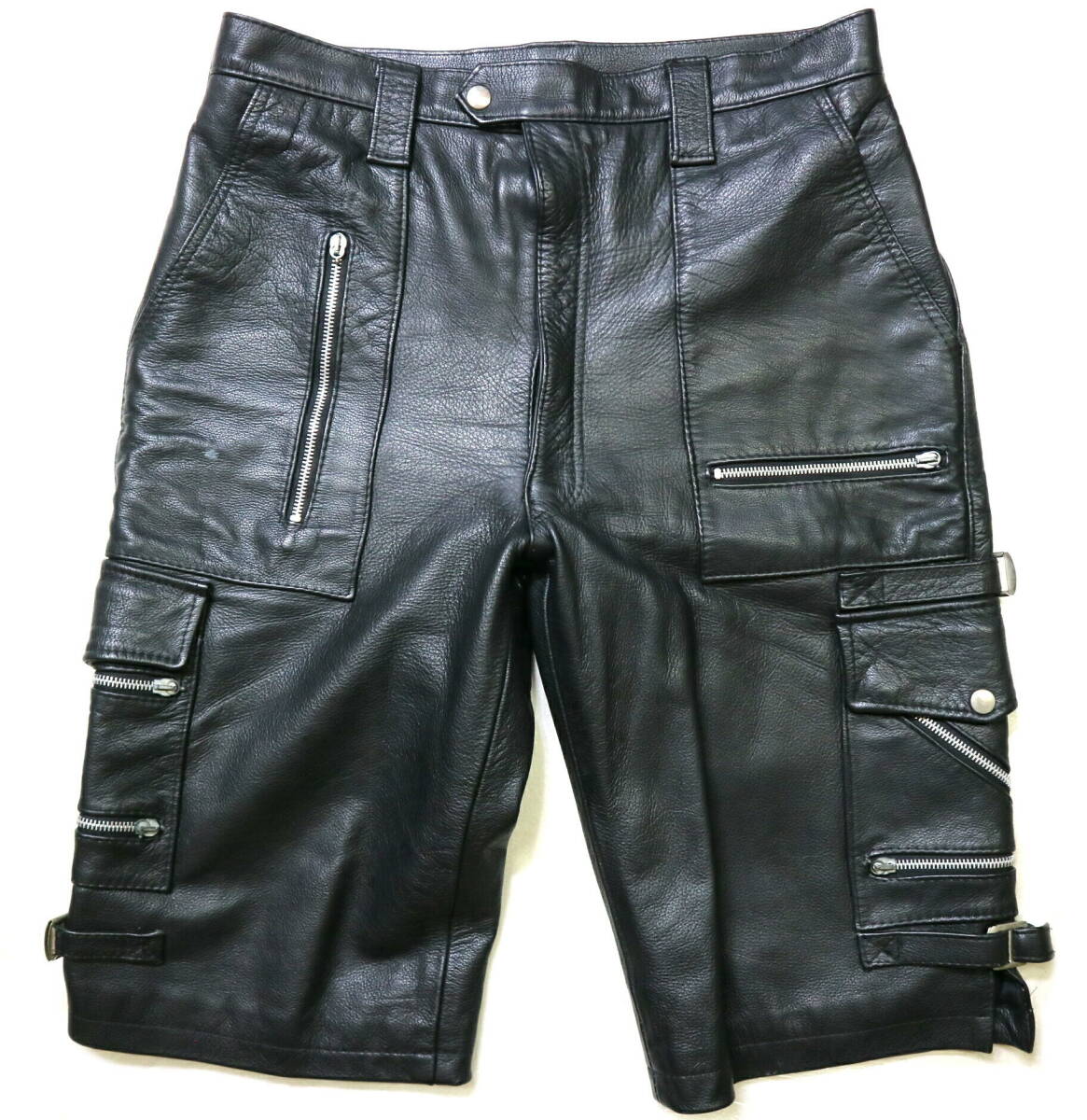- 程度良好!◆英国製 666 トリプルシックス 牛革 レザーショートパンツ◆34(ウエスト86センチまで) レザーショーツ