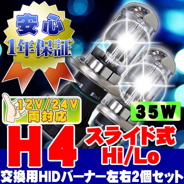 > HIDバーナー 35W H4 Hi/Loスライド式 8000K 12V/24V 交換用左右セット UVカット加工 石英ガラス ヘッドライト
