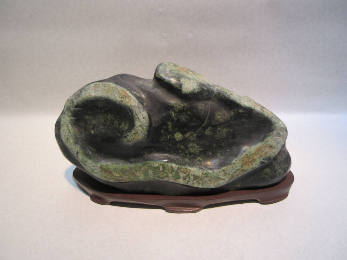 - T2486 愛石家 美石・盆石放出品 蛇石 台付き 縁起物 干支 金運 水石 盆石 鑑賞石