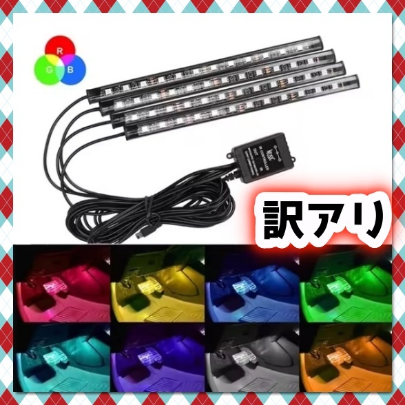> 訳アリ USB式 音楽連動 4本 LED フロアライト リモコン付き 車内 足元 装飾 フットライト RGB LEDテープ イルミ 12V 24V オレンジ 汎用