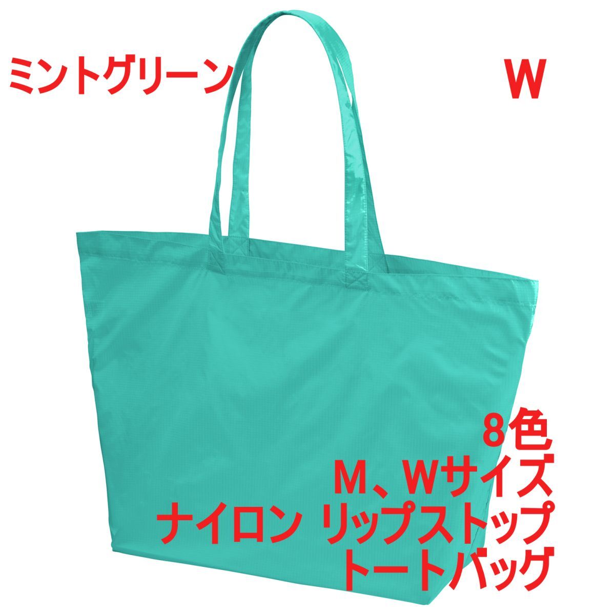 > トートバッグ Wサイズ ミント グリーン 無地 ナイロン 2サイズ かばん BAG 手提げ トート リップストップ 薄手 丈夫 A2156 緑 緑色 142201