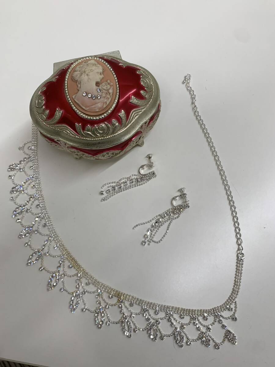 > ★RK)アクセサリー ネックレス&イヤリング ラインストーン付き カメオジュエリーケースオルゴール付き まとめて♪♪