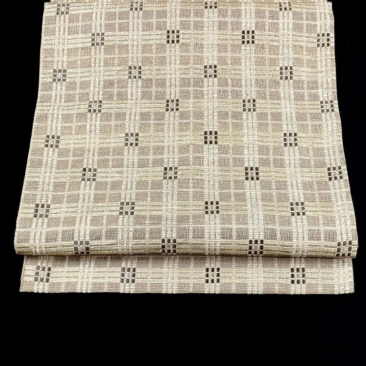 - 着物月花 吉村織物 綾羅 栗皮染 格子文様 袋帯 六通柄 正絹 西陣織物 ob7126