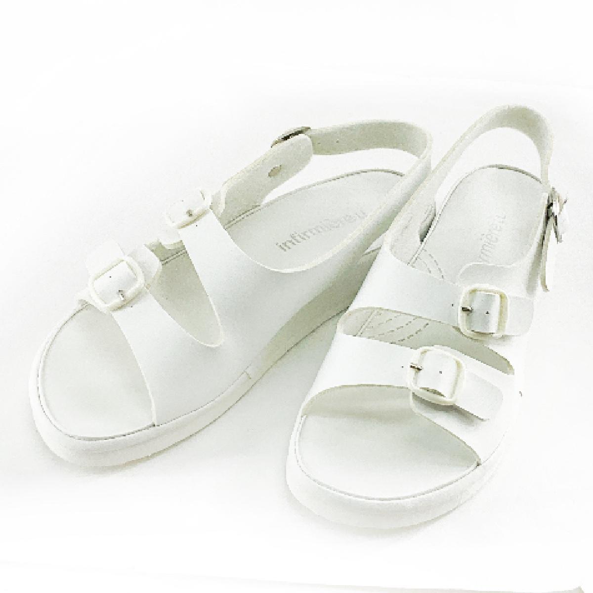 - 訳あり ワイドナースサンダル 衝撃吸収 ベルト調整付き快適シューズ 看護師 介護士 LL 24.0~24.5cm ホワイト